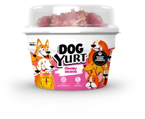 Snack para perros de todas las razas. Topping hecho con pollo, trigo y alimento líquido no lácteo con probióticos, hecho a base de agua.